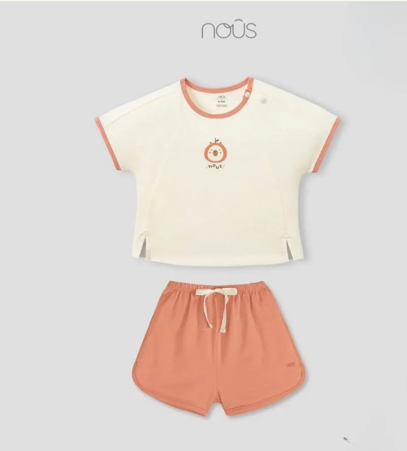 NOUS S20 - Bộ cộc tay áo be phối quần cam in hình 6M - 6-9M - SS25.NP