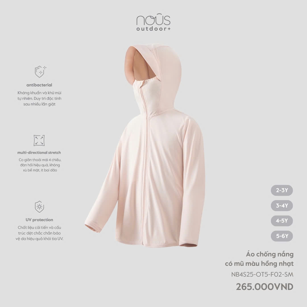 NOUS S10 - Áo chống nắng có mũ màu hồng nhạt - 2-3Y - SS25.T5A