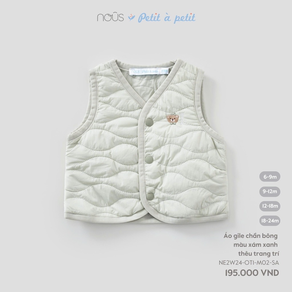 NOUS - Áo gile chần bông màu xám xanh thêu trang trí -SS25.T9A