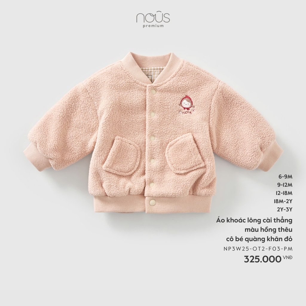 NOUS - Áo khoác lông cài thẳng màu hồng thêu cô bé quàng khăn đỏ - 2-3Y - SS25.T11A