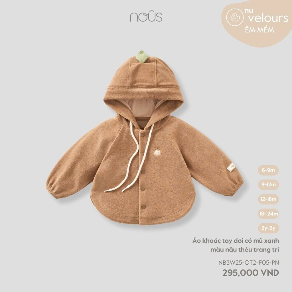NOUS - Áo khoác tay dơi có mũ xanh màu nâu thêu trang trí - 2-3Y - SS25.T10A