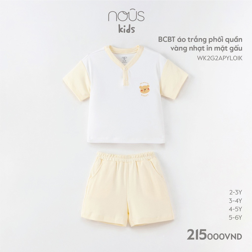 NOUS - BCBT áo trắng phối quần vàng nhạt in mặt gấu