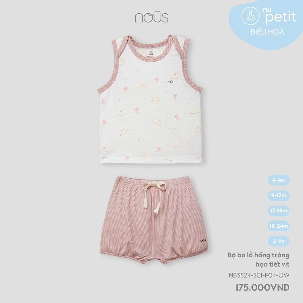 NOUS:-:Bộ:ba:lỗ:hồng:trắng:họa:tiết:vịt:-:2-3Y:-:SS24.T4A