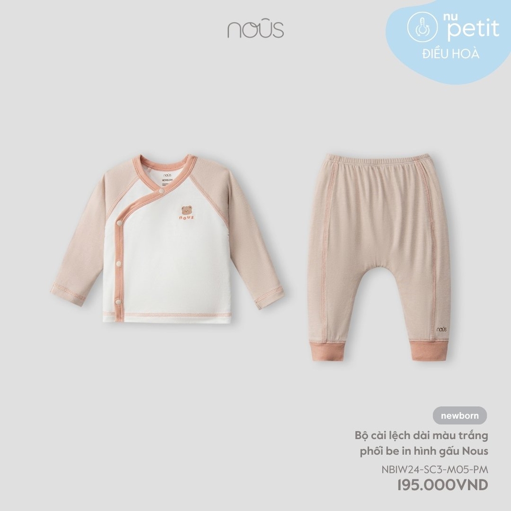 NOUS - Bộ cài lệch dài màu trắng phối be in hình gấu Nous - NB - SS24.T7B
