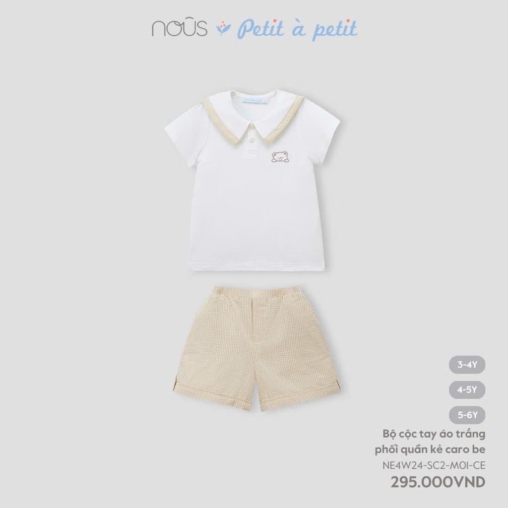 NOUS - Bộ cộc tay áo trắng phối quần kẻ caro be 5Y - 5-6Y - SS24.T8A