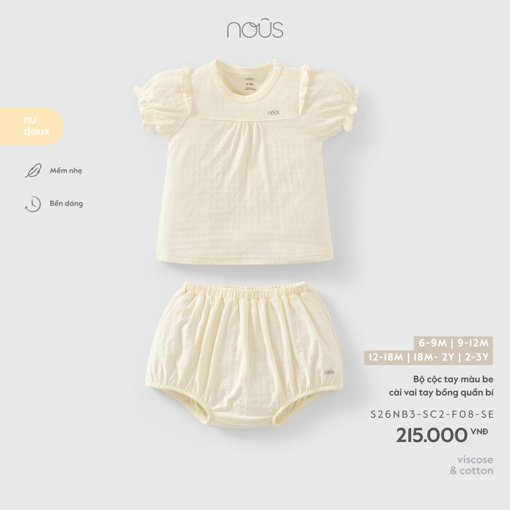 NOUS - Bộ cộc tay màu be cài vai tay bồng quần bí - 18-24M - SS26.T4A