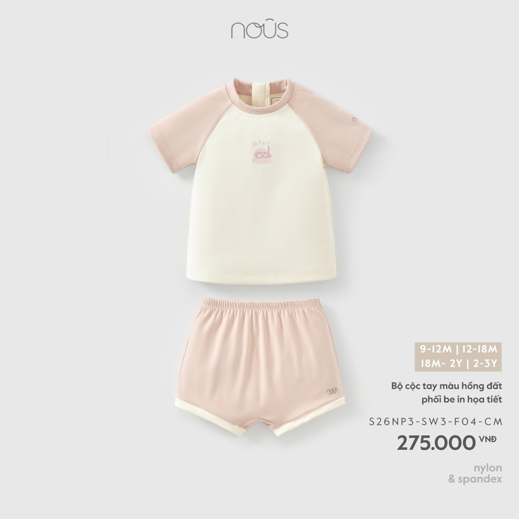 NOUS - Bộ cộc tay màu hồng đất phối be in họa tiết - 18-24M - SS26.T4A