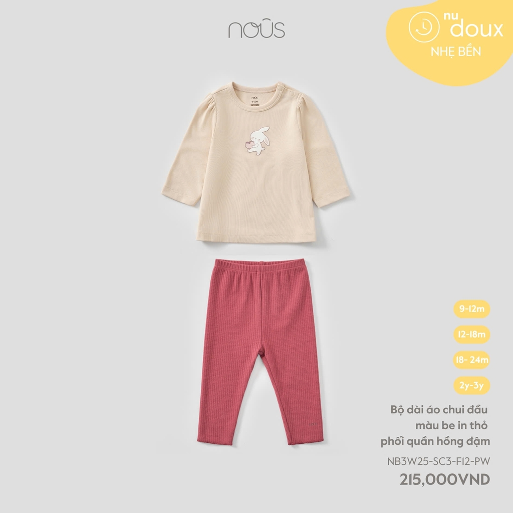 NOUS S10 - Bộ dài áo chui đầu màu be in thỏ phối quần hồng đậm - 12-18M - SS25.T8A