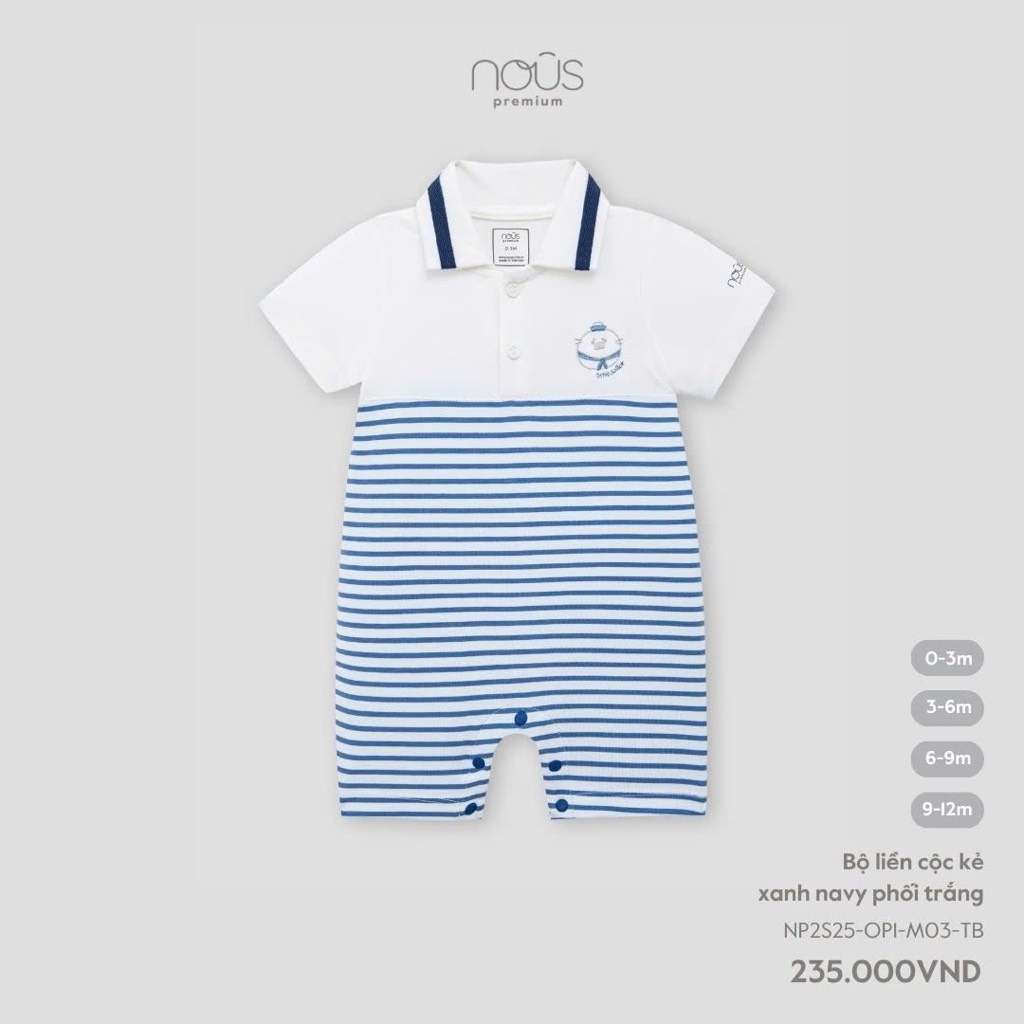NOUS - Body cộc kẻ xanh navy phối trắng - SS25.T4A