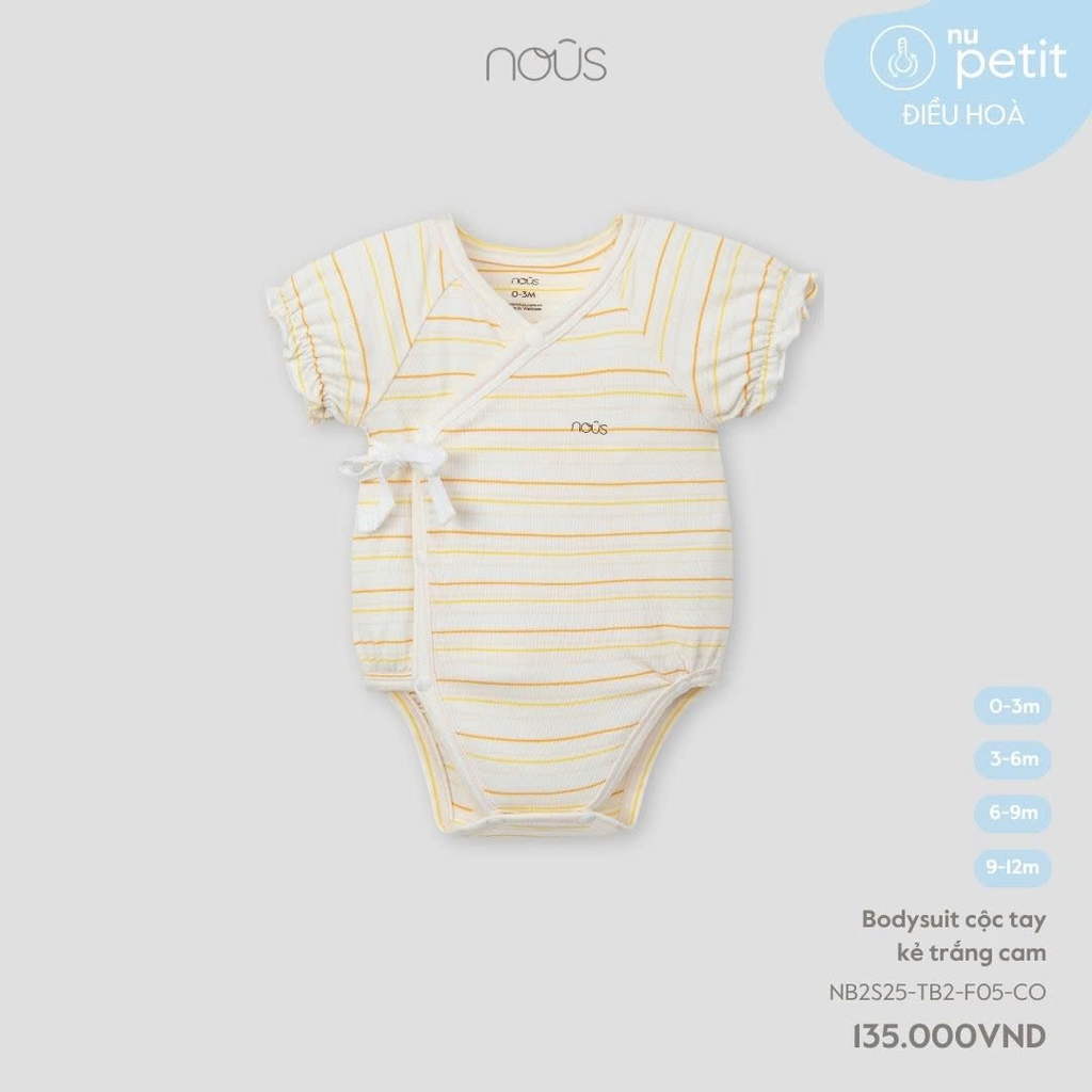 NOUS S10 - body cộc tay kẻ trắng cam - 9-12M - SS25.T5A