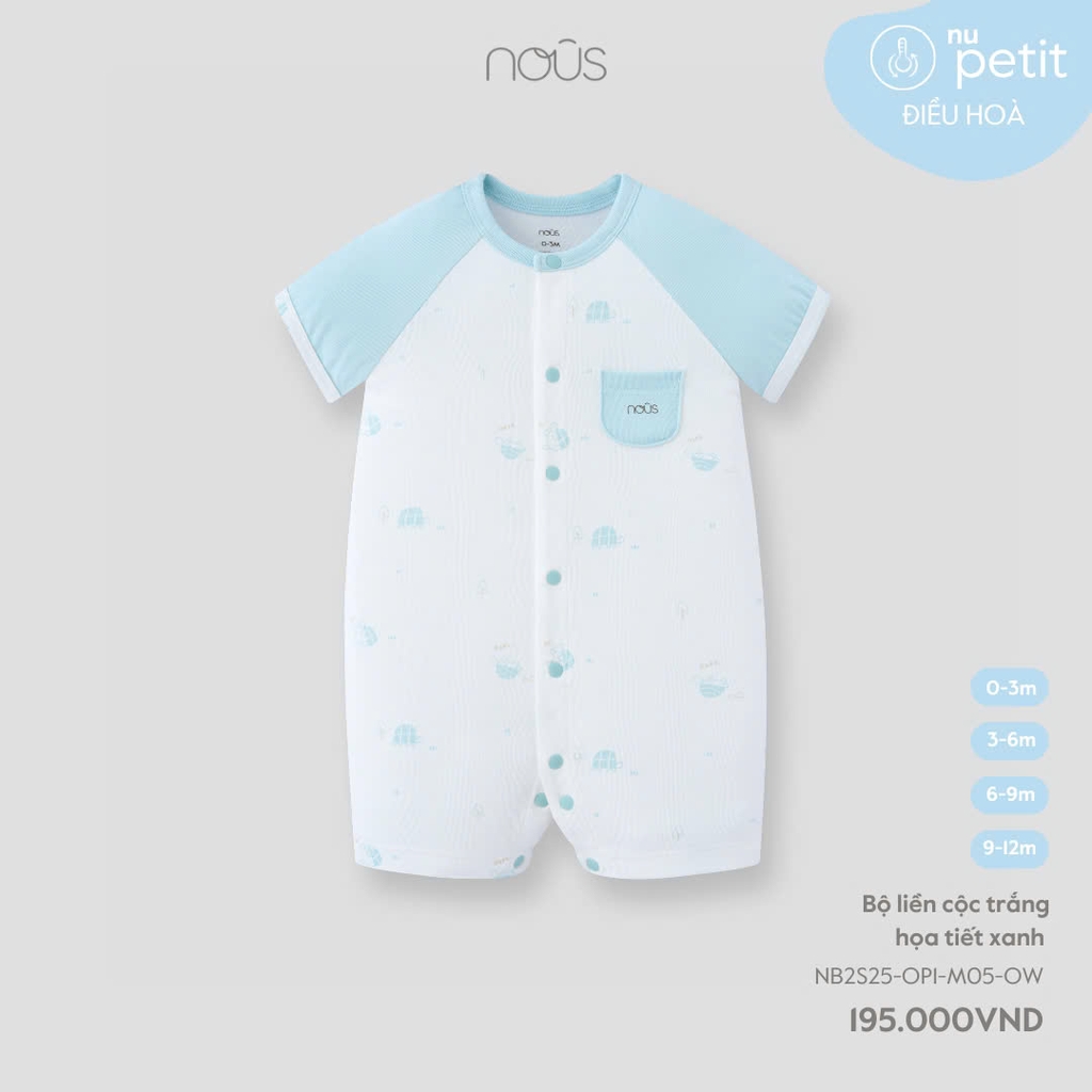 NOUS:-:Body:cộc:trắng:họa:tiết:xanh:-:0-3M:-:SS25.T5A