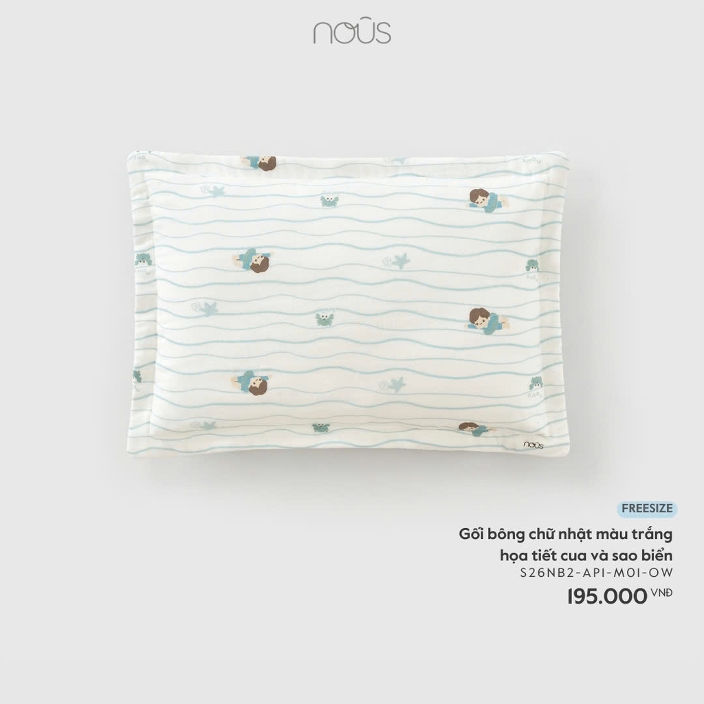 NOUS - Gối bông chữ nhật màu trắng họa tiết cua và sao biển - FS - SS26.T1A