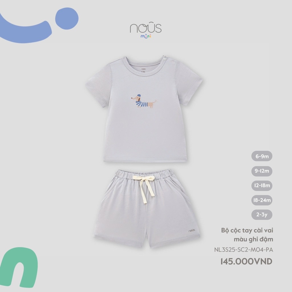 NOUS MINI - Bộ cộc tay cài vai màu ghi đậm - 9-12M - SS25.T4B