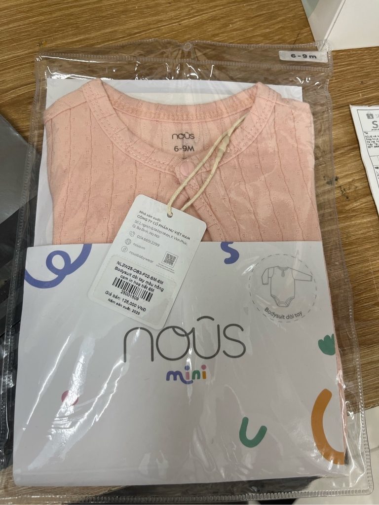 NOUS S10 - Body chip dài tay màu hồng cam in hoạ tiết - 3-6M - SS25.T7B