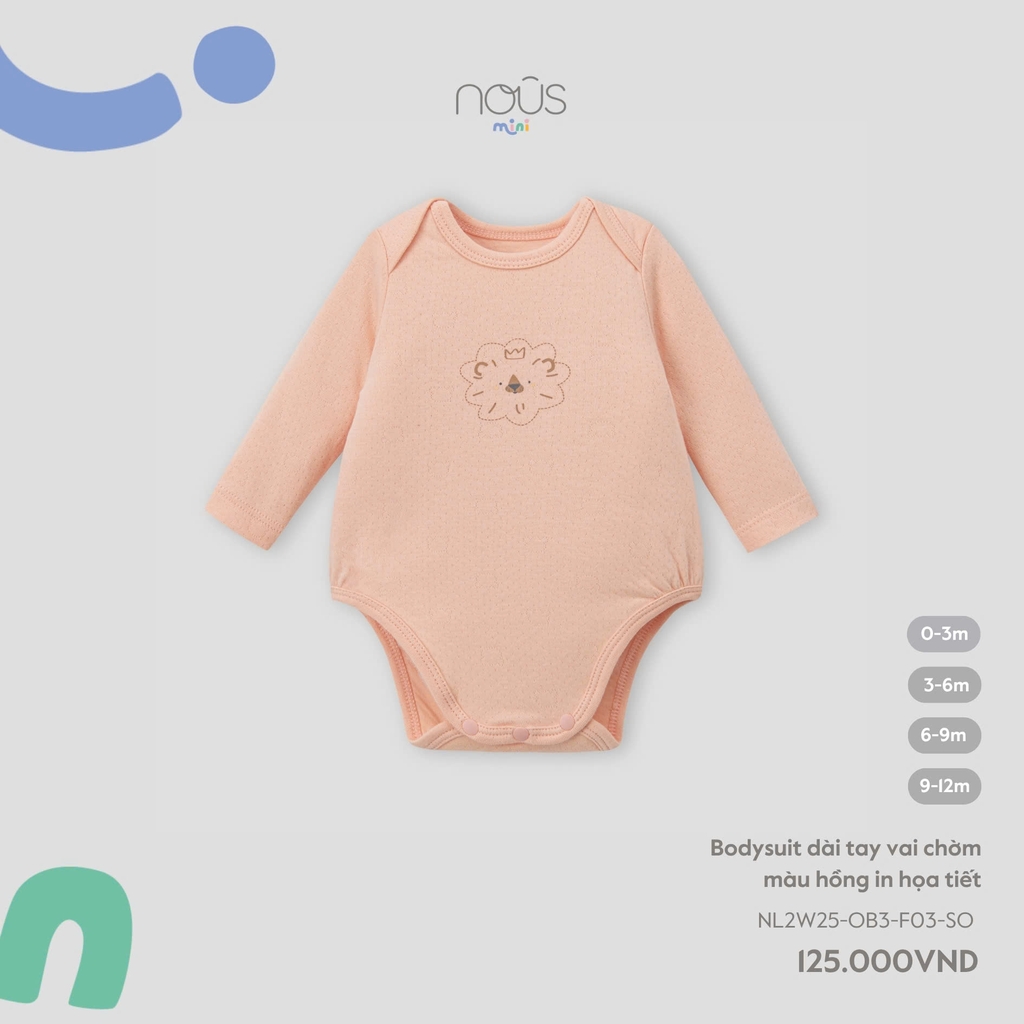 NOUS MINI - Body chip dài tay vai chờm màu hồng in họa tiết - SS25.T8B - màu hồng in họa tiết - 6-9M
