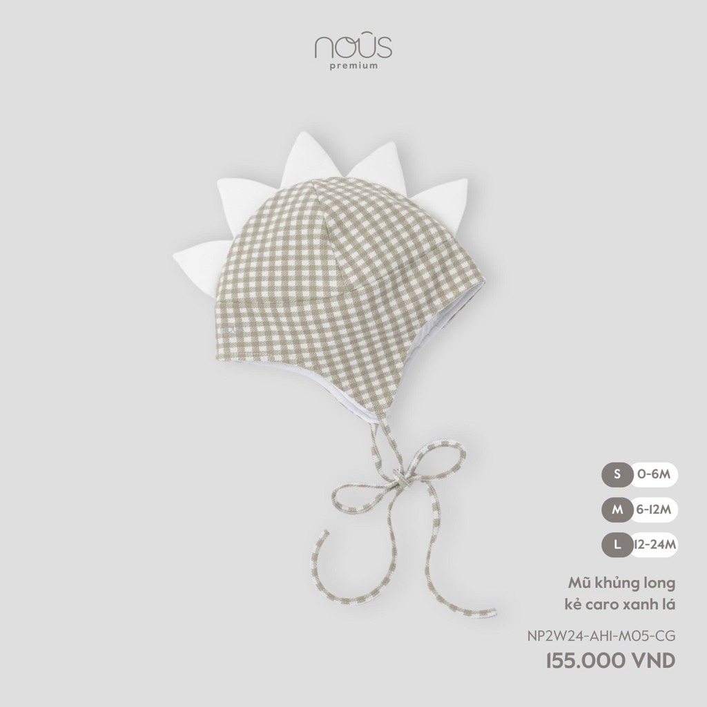 NOUS - Mũ khủng long kẻ caro xanh lá - S - SS25.T9A