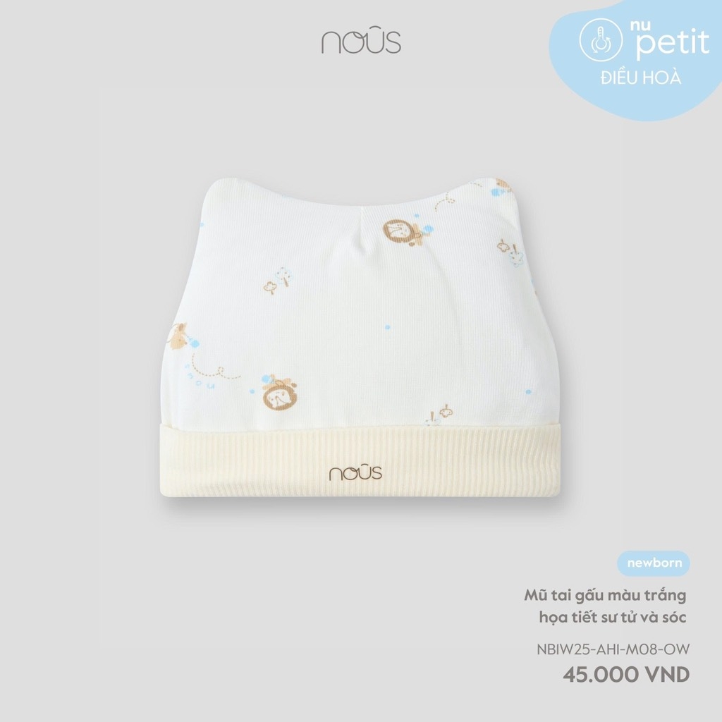 NOUS - Mũ tai gấu màu trắng họa tiết sư tử và sóc -SS25.T9A