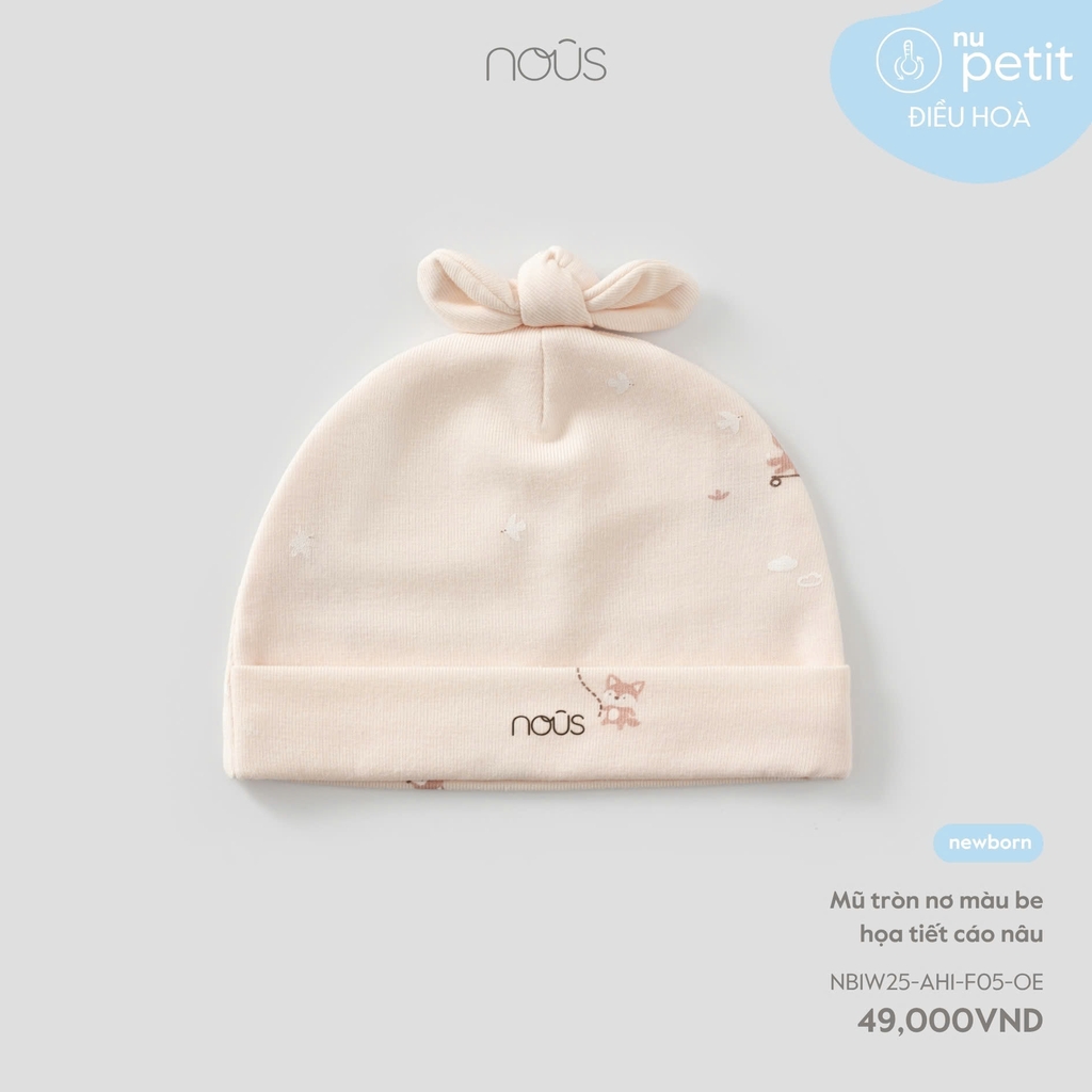 NOUS - Mũ tròn nơ màu be họa tiết cáo nâu - SS25.T8A