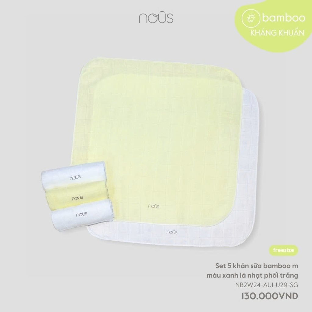 NOUS - Set 5 khăn sữa bamboo màu xanh lá nhạt phối trắng - Nu Bamboo - FS - SS24.11B